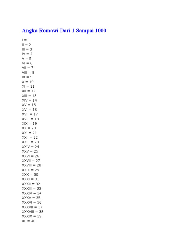 Angka Romawi Dari 1 Sampai 1000 Pdf